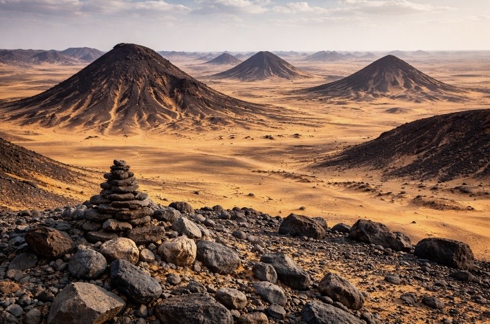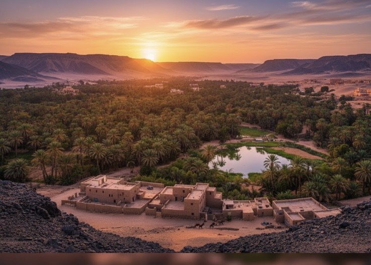 Desayuno y tiempo libre para disfrutar de este paradisíaco lugar. A la hora convenida, saldremos en 4×4 para descubrir dos paisajes que parecen de otro planeta: El Desierto Negro y el Desierto Blanco. El Negro lleva este nombre porque está formado por montañas volcánicas cubiertas de piedras oscuras. Realizaremos una comida-safari en el pintoresco pueblo El Heiz, un almuerzo típico en el campamento local. Tras este descanso, partiremos hacia la Montaña de Cristal, pequeña cresta geológica formada por cristales de calcita y cuarzo, una maravilla natural que destaca por sus formaciones brillantes.