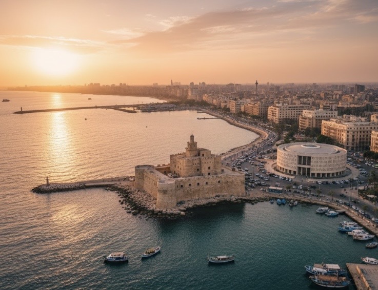 Desayuno y salida para realizar la visita de día completo de la ciudad de Alejandría por carretera, con almuerzo en restaurante local. Alejandría es, posiblemente, una de las ciudades más fascinantes de la historia. No sólo es la segunda ciudad más grande de Egipto, sino que durante siglos fue el faro intelectual del mundo antiguo, donde el conocimiento de Oriente y Occidente se daban la mano. Fundada en el 331 a.C. por Alejandro Magno, la ciudad fue diseñada para ser el vínculo entre Grecia y el Valle del Nilo.